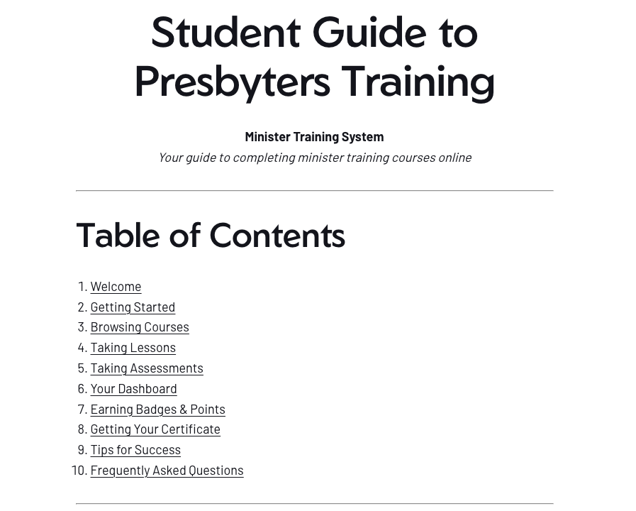 Student Guide To Presbyters Training